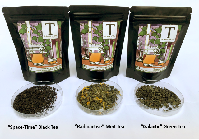3 types of test: "Space-Time" Black Tea, "Radioactive" Mint Tea, and "Galactic" Green Tea. (.5oz each, approx. 30 servings),Borosilicate Beaker Mug, Reusable Cloth Teabag, “Bunsen” Tea Infuser, 3 pH Strips, 44pg Workbook, Mini-Notebook, 1 Honey Stick, Petri Dish & Pipette